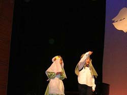 鮮やかなグリーンのコートドレスを翻して、ステージへ。