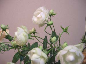 途中で寄ったのは街角の大きな花屋さん。 薔薇ではないような優しい白い花に惹かれて買う。 こんなにしなやかな茎なのに、下の方にはちゃんと棘があった。 オレンジ色のカーネーションと活けたら玄関が明るくなる。