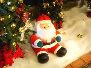 ツリーがいっぱい並び、その間にはこんな愛らしいサンタの人形が坐っていた。 「二十年以上もディナーショーをさせていただいております、さだまさしです」 にこやかに話す彼に、 その二十数年前の、来たくて来たくてのファンだったわたしを思い出していた。 あの時、ボーイさんにスープをこぼされて、あわててスカートを洗いに行った。 戻るエレベーターホールで、知っている若い男性に会った。 「だれだっけ?」と思ったら、それがまさしさま! ひとこと、話した‥‥ 今夜は来たくて来たくてのわたしではなかったけれど、 握手をした手はあたたかだった。 そうそう、地震があったことも演奏中で気がつかなかったわたし。 12月19日(火) |
